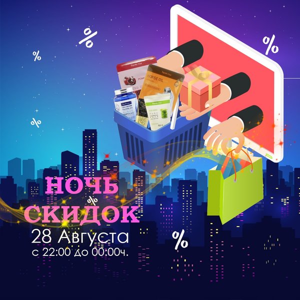 Дорогие наши подписчики 28 Августа т.е. уже завтра, в интернет магазине будет проходить Акция «НОЧЬ СКИДОК» 28 АВГУСТА с 22:00 часов до 00:00 часов ночи. Не упустите момент выгодных покупок! Скидки будут закреплены за товарными позициями. ⏰Ночь скидок будет длится 2 часа. Заказы будут развозится на следующий рабочий день 29 Август.