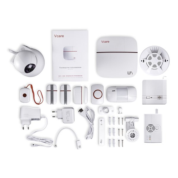 ных до 20 кг) Преимущества: Простая установка, не требует монтажа и технической подготовки Все датчики имеют QR код, сканируя который датчики добавляются в систему с помощью приложения Оповещение до 10 телефонных номеров Подключение многофункциональных беспроводных датчиков дополнительно (опционально) Функция термометра -30°С +60°С При отключении сети 220 В, данная система проработает в сети автономно еще 36 часов Удаленное управление из любой точки мира, с помощью приложения установленного в смартфон Приложение доступно для Android и IOS Работает одновременно с помощью мобильного интернета и WiFi, в случае отключения энергии данная система продолжает работать автономно используя мобильный интернет В комплекте (11 позиции): 1 GSM панель (головное устройство с температурным датчиком и датчиком влажности, встроенный модуль WiFi) 1 датчик движения 1 датчик размыкания дверей/окон 2 пульта управления (для постановки/снятия сигнализации, кнопка SOS) 1 IP камера (полное удаленное управление, двухсторонняя голосовая связь, режим автомониторинга, датчик движения, ночное видение) 1 кнопка вызова (так же используется для вызова экстренных служб, например скорой помощи) 1 кнопка SOS (сигнализация не срабатывает, в данном случае она начинает звонить всем членам семьи) 1 датчик дыма 1 датчик утечки газа 1 датчик утечки воды Опционально можно докупить дополнительные датчики, пульты, кнопки, а так же внутреннюю и внешнюю свето-шумовые сирены Артикул 51W0P6X7X Цена 89 935 тенге Цена оптовая 88 137 тенге Цена действительна в день рассылки. Еще больше устройств безопасности в нашем каталоге -