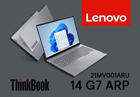 а зависит от нагрузки) Накопитель: 512 GB SSD (NVMe PCIe) Дисплей: 14″ IPS, WUXGA (1920×1200), матовый, антибликовое покрытие Графика: интегрированная, AMD Radeon 660M Безопасность: сканер отпечатков пальцев (FPR), IR-камера, шторка ThinkShutter Камера: Full HD (1080p) с ИК-датчиком для распознавания лица Беспроводная связь: Wi-Fi 6E (802.11ax), Bluetooth 5.3 Аккумулятор: интегрированный литий-полимерный (типичная емкость зависит от конфигурации) Операционная система: NoOS (операционная система не предустановлена) Гарантия 1 год стандартной гарантии производителя Преимущества для оптового покупателя: Единый стандарт: Оснащая отделы одинаковыми ноутбуками, вы упрощаете IT-поддержку, закупку аксессуаров и обучение сотрудников. Надежность бренда: ThinkBook — линейка, известная своей долговечностью и качеством сборки, что снижает затраты на ремонт и простои. Отсутствие предустановленной ОС (NoOS): Гибкость для компаний, использующих корпоративные лицензии или специализированное ПО. Оптимальная цена/качество: Модель предлагает функции премиум-класса по конкурентной стоимости, что критически важно при массовых закупках. Lenovo ThinkBook 14 G7 ARP (21MV001ARU) особенности Мощная платформа AMD Ryzen В основе модели — современный процессор AMD Ryzen 5 7535HS. Это 6-ядерный (Hexa-core) чип с максимальной частотой до 4.5 ГГц, созданный на эффективной архитектуре. Он обеспечивает: Быструю работу с тяжелыми приложениями: офисные пакеты, графические редакторы, системы проектного управления, 1С — всё работает без задержек. Плавную многозадачность: десятки вкладок браузера, видеозвонки, работа с документами и почтой одновременно — система не тормозит. Энергоэффективность: оптимизированное энергопотребление продлевает время автономной работы. Оперативная память 16 GB — оптимальный объем для большинства бизнес-задач. Этого хватит для комфортной работы современных операционных систем, корпоративного ПО и виртуализации. Визуальное преимущество: Четкая и яркая картинка Ноутбук оснащен 14-дюймовым IPS-экраном с разрешением WUXGA (1920×1200). Это решение дает на 11% больше рабочего пространства по вертикали по сравнению с стандартным Full HD, что критически важно для работы с таблицами, документами и веб-страницами. Технология IPS гарантирует широкие углы обзора и точную цветопередачу. Матрица с антибликовым покрытием позволяет работать при любом освещении. Графика и хранилище: Универсальность и скорость Интегрированная графика AMD Radeon 660M — это не просто видеоядро. Она с запасом тянет не только повседневные задачи, но и обработку фото, монтаж простого видео, а также обеспечит качественную картинку в видеоконференциях. Накопитель SSD на 512 GB — залог молниеносной загрузки системы и приложений. Файлы открываются мгновенно, а копирование данных занимает секунды. Это напрямую влияет на эффективность сотрудника. Безопасность и связь ThinkBook создан для бизнеса, поэтому здесь уделено особое внимание безопасности: Сканер отпечатков пальцев (FPR) — быстрый и надежный способ входа в систему без ввода пароля. IR-камера с поддержкой Windows Hello — альтернативный вариант безопасного входа с помощью распознавания лица. 1080p-камера с физической шторкой ThinkShutter защитит вашу приватность от несанкционированного доступа. Современные технологии связи — еще один козырь модели: Wi-Fi 6E обеспечивает максимально стабильное и быстрое беспроводное подключение даже в перегруженных 