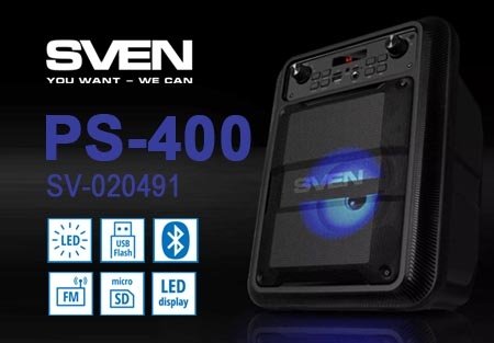 ие характеристики Выходная мощность (RMS): 12 Вт Частотный диапазон: 100 – 20 000 Гц Диаметр динамика: 108 мм Вес: 1,4 кг Размеры: 252 × 330 × 177 мм Тип подключения: Bluetooth, AUX, USB, microSD Аккумулятор: Li-Ion, 3.7 В, 1200 мА·ч Зарядный разъём: microUSB Радиус действия Bluetooth: примерно до 10 м SVEN PS-400 ключевые особенности Беспроводное и проводное подключение Поддержка Bluetooth — легко подключить смартфон, планшет или ноутбук без кабелей. Возможность TWS (True Wireless Stereo): соединение двух колонок PS-400 к одному источнику для создания стереопары и более широкого звукового поля. Проводной AUX-вход — классический способ подключения, если нужен стабильный звук или заряд батареи. Функция караоке Колонка имеет микрофонный вход, что позволяет использовать её для караоке-вечеринок. Громкость голоса можно регулировать через панель управления. Медиа-поддержка Устройство может воспроизводить музыку с USB-флешек и карт microSD, что делает его независимым от смартфона или ПК. FM-радио Встроенный FM-тюнер (87.5–108 МГц) позволяет слушать радиостанции. Для приёма используется кабель — он одновременно служит антенной. LED-дисплей и эквалайзер На LED-экране отображается частота радиостанции, уровень громкости, время трека (при воспроизведении с USB/microSD). Также есть встроенный эквалайзер, который позволяет подстроить звучание под помещение или музыкальный жанр. Подсветка RGB-подсветка не только динамическая, но и отключаемая — можно выключить, если она не нужна. Переносимость Корпус имеет прочную цельную ручку, что облегчает транспортировку. Автономность Встроенный литий-ионный аккумулятор на 1200 мА·ч (3.7 В, ёмк. ~4.44 Вт·ч) обеспечивает до 10 часов работы без подзарядки. Питается через microUSB. Преимущества для оптовой компании и ритейлеров Широкий рынок: PS-400 подходит и для развлекательного сегмента (вечеринки, караоке), и для бытового использования (музыка дома, радио), что делает её универсальным товаром. Хорошее соотношение цена-качество: функциональность выше, чем у простых портативных колонок, а цена доступная для массового потребителя. Бренд SVEN: надёжный бренд, хорошо известен на рынках, что облегчает продвижение и продажу. Аксессуар-напряжение: потребители могут покупать её как подарок или как автономную акустику, а возможность синхронизации двух колонок по TWS позволяет продавать «двойные» наборы. Лёгкость логистики: вес ~1,4 кг, компактные габариты — удобно хранить на складе, перевозить, сортировать. Долгий срок эксплуатации: литий-ионный аккумулятор, современный интерфейс подключения, подсветка — добавляют ценность. Где и как использовать Магазины электроники и гаджетов: как премиум-портативную колонку. Музыкальные магазины и DJ-ритейлеры: для клиентов, которые хотят компактную, но мощную систему для вечеринок. Подарочные корзины: в комплекте с микрофоном колонка может стать отличным подарком. Офис и корпоративные клиенты: как устройство для фоновой музыки или для небольших тимбилдингов. Онлайн-продажи: благодаря удобной упаковке и высокой популярности Bluetooth-колонок. SVEN PS-400 — это продуманная портативная акустическая система с богатым набором функций: Bluetooth и TWS, караоке, медиаплеер (USB/microSD), FM-радио, RGB-подсветка, LED-дисплей и хороший запас автономности. Для оптовой компании это отличный товар, способный привлечь широкий круг покупателей — от молодежи, устраивающей вечеринки, до офисов и домашних поль