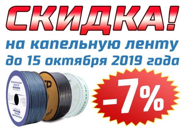 Дорогие друзья!!! У нас до 15 октября 2019 года действует скидка -7% на капельную ленту от мировых производителей! Ждем ваших звонков по номерам:,,,, или пишите на whatsapp:.