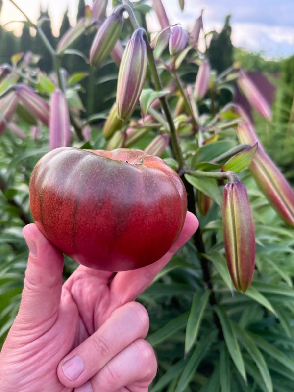 Этот томат невозможно не заметить. Его насыщенный тёмно-красный оттенок с благородным шоколадным переливом — как произведение искусства на полке.