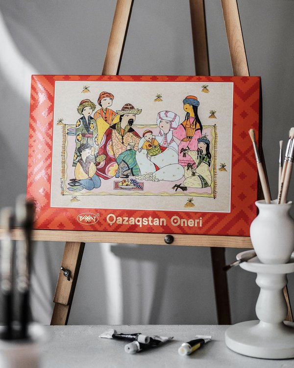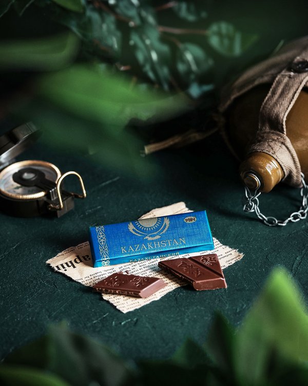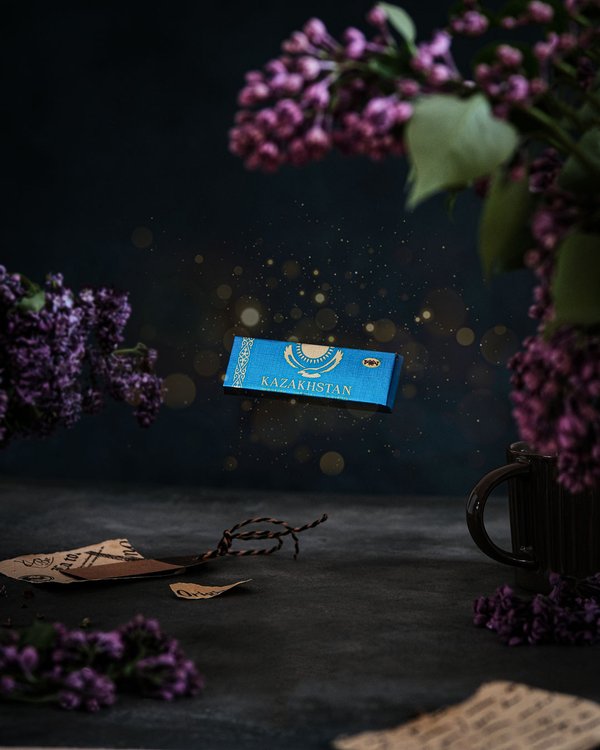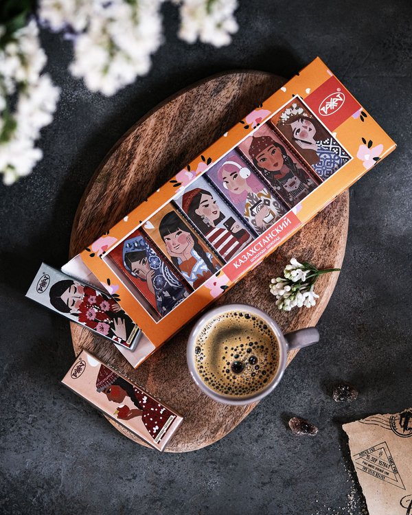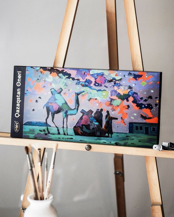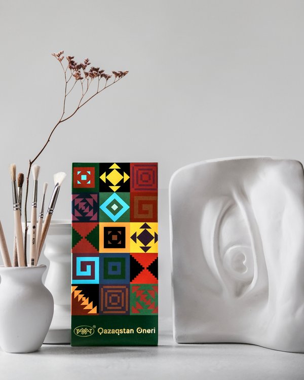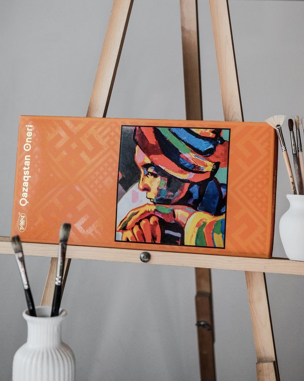 Оразбек Есенбаевтың шығармасымен безендірілген «Казахстанский» қоңыр шоколад тақтасы. «Үш деңгей» картинасы халықтың өмір салты мен қазақ мәдениетіндегі құндылықтар сабақтастығын паш етеді. ⠀ Плитка тёмного шоколада «Казахстанский» в художественном оформлении Оразбека Есенбаева. Картина «Три уровня» отражает традиционный уклад жизни народа и круговорот передачи ценностей в казахской культуре.