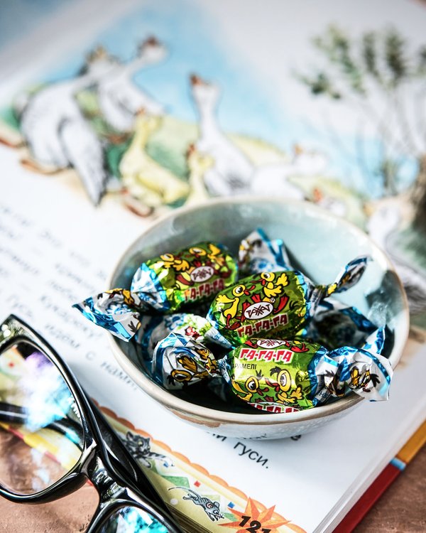 Қатпарлы карамельден жасалған салмасы бар «Га-га-га» кәмпиті – балалық шақтың тәтті естелігі. ⠀ Конфета «Га-га-га» с начинкой из слоеной карамели — вкус детских воспоминаний.