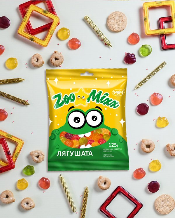 Түрлі түсті қонжықтар – «Рахаттың» ZooMixx орамын мекендейтін, сирек кездесетін мармелад аюлар! Жемістен жасалған, түстері әдемі әрі сүйкімді. ⠀ Разноцветные медведи — редкий вид медведей мармеладных, обитающих только в пачках ZooMixx от Рахат! Фруктовые, яркие и дружелюбные.
