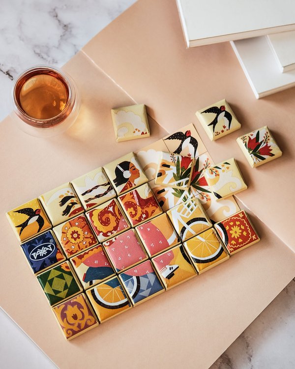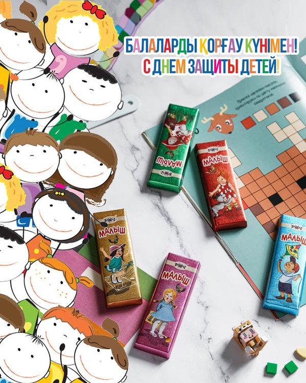 Бөлісу оңай! Достарыңмен бірге «Жаңа Ерке» деп аталып, жаңа пішінмен шағын тақта түрінде шығарылған сүйікті «Қазақстан» шоколадының дәмін тат. Әйгерім Карибаеваның салған суреті. ⠀ Делиться легко! Раздели с друзьями вкус любимого «Казахстанского» шоколада в новом формате мини-плиток «Жана Ерке». Иллюстрация Айгерим Карибаевой.