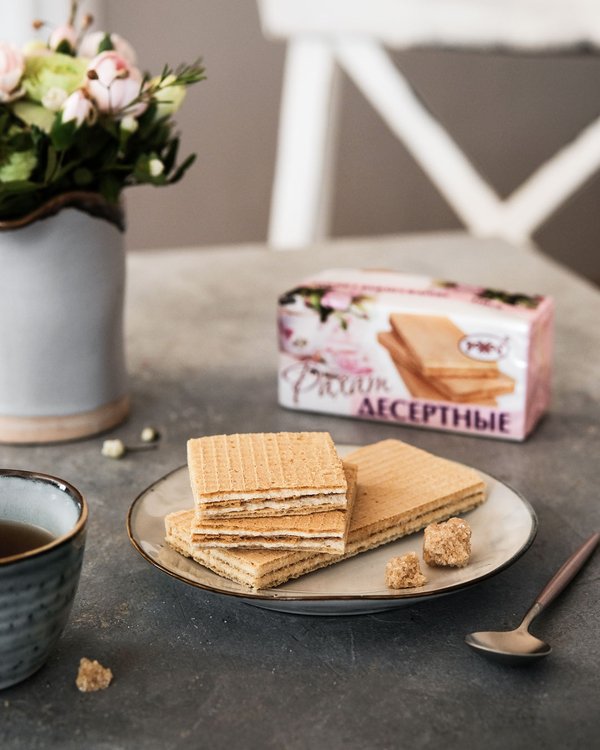 Вафля қабаттары арасындағы нәзік кілегей тәтті тоқашты елестетеді! «Десертные» вафлясы — вафля түріндегі нағыз десерттік тағам. ⠀ Нежная сливочная прослойка между вафельными листами — звучит как рецепт пирожного! Вафли «десертные» — настоящий десерт в пачке вафель.