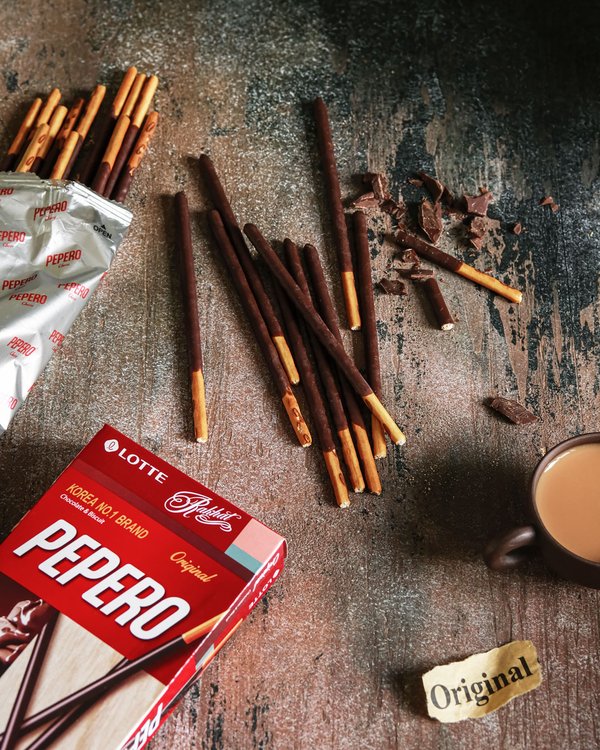 Қоңыр шоколад кітірлек печенье-таяқшамен біріксе, өзіндік дәмі бар Pepero original печеньесі пайда болады. ⠀ Когда тёмный шоколад встречается с палочкой из хрустящего печенья — получается классический вкус Pepero original.