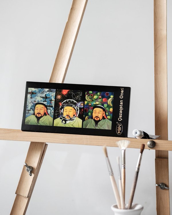 Белгілі суретші Арыстанбек Шалбаев безендірген әйгілі «Казахстанский» щоколады. 2018 жылы Нью- Йорктегі көрмеде өнерді сүйетіндердің бағасын алған «Чингисхан» триптихі шоколадты айшықтай түседі. ⠀ Знаменитый «Казахстанский» шоколад в оформлении известного художника Арыстанбека Шалбаева. Шоколад украшает триптих «Чингисхан» — картина, получившая признание ценителей искусства на выставке в Нью-Йорке в 2018 году.