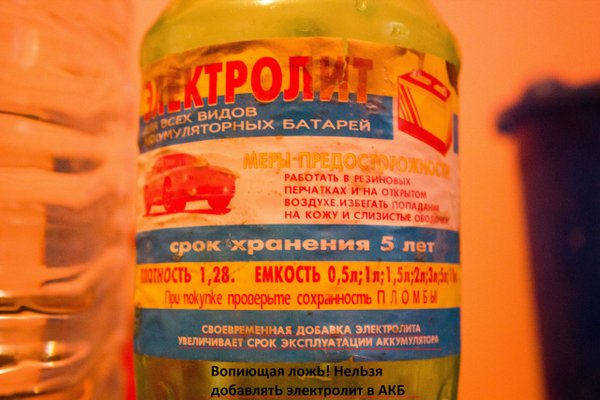 рзания, что особенно плохо в холодное время года. . Корректировка плотности электролита производится исключительно зарядными устройствами. Доливка электролита требуется только в случае если он каким-либо образом был слит. В случае если уровень электролита понизился из-за испарения воды — электролит не доливаем. Доливка электролита приводит к повышению плотности и скорому выходу аккумулятора из строя. Доливаем чистую дистиллированную воду. . Корректировка плотности электролита процесс весьма продолжительный. В среднем, для того чтобы поднять плотность на один пункт (0.01 г/см³) необходимо 3—4 часа. . Аккумулятор держит плотность электролита в случае когда генератор авто поддерживает необходимый уровень напряжения, достаточный для аккумулятора. Даже при минимальных разрядах (оставленные включенные фары, магнитола, сигнализация и прочее) плотность электролита, а вместе с ней и ёмкость, не восстанавливается генератором. Для этого необходима стационарная подзарядка напряжение 15.5В в течении (не более и не менее) 8—12 часов не чаще, чем один раз в месяц, но не реже, чем один раз в шесть месяцев. . В общем, срок службы аккумулятора определяется его фактической ёмкостью при покупке. При эксплуатации эта ёмкость неуклонно снижается. Чтобы компенсировать фактическую ёмкость необходимо подзаряжать аккумулятор зарядными устройствами. Подзаряжать тогда, когда он ещё в работоспособном состоянии, а не тогда когда он приказал долго жить. . Пользы и успешных запусков! Постоянный ТОК, Постоянная уверенность. Для приобретения оптимизированного аккумулятора: 050016, г.Алматы, улица Кунаева, 2