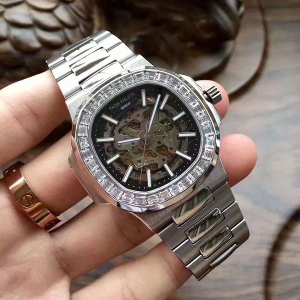 Мужские часы Patek, Philippe на кожаном черном ремешке, в стальном цвете, черный циферблат, сапфировое стекло, оригинальный швейцарский механизм. Цена данной модели в магазине VIPCLUB.KZ 125000 тенге.