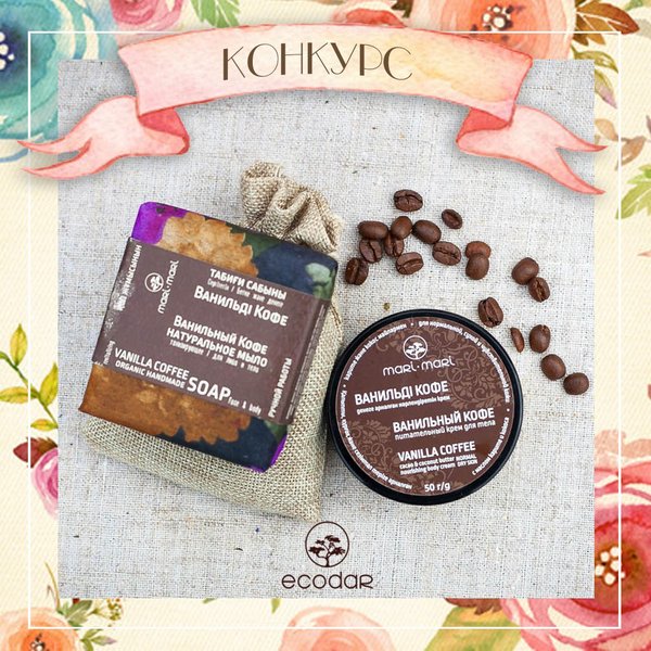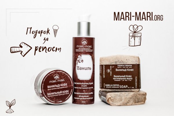 Давненько не было подарков и конкурсов. В этот раз мы разыгрываем «Ванильный» набор. Такой ароматный! Крем для тела «Ванильный Кофе» 100гр, Сливки для лица «Ваниль» и Мыло «Ванильный Кофе» 15 августа генератор случайных чисел определит трёх победителей, которые получат по набору. Математика несложная, а условия ещё проще: нужно вступить в группу Mari-Mari, сделать репост этой записи и не удалять её до момента подведения итогов. Желаем удачи!
