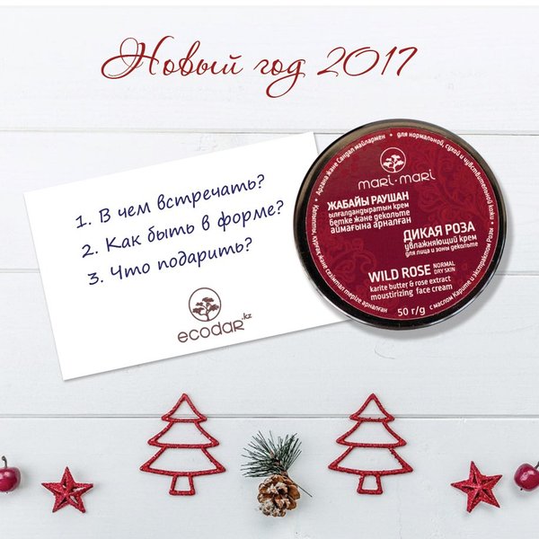 Дорогие друзья, если вы еще не успели приобрести новогодние подарки для родных и близких, мы предлагаем вам подарить новогодний набор натуральной косметики без парабенов, без SLS. У нас вы найдете большой ассортимент природных средств по уходу за волосами, лицом и телом. Приобрести лучшие новогодние в Алматы вы можете по адресу: Бутик «Экодар», ул. Гоголя 99/105, уг. Желтоксан __________________________________________