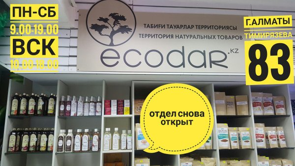 Интернет-магазин «Экодар» Ecodar.kz — оплата заказов онлайн, доставка по всему Казахстану , Наш основной магазин г.Алматы, ул.Гоголя 99/105 уг. ул.Желтоксан здесь вам подробно расскажут о косметике, ответят на вопросы, отдадут онлайн-заказы Режим работы: пн-пят 10.00 — 19.00, Партнеры в г.Алматы: Центральная Аптека, Фурманова 91/97 АптекаПлюс, Ауэзова 173 Galmart, мкр. Самал 2, 111 BioGourmet, мкр. Мирас 128