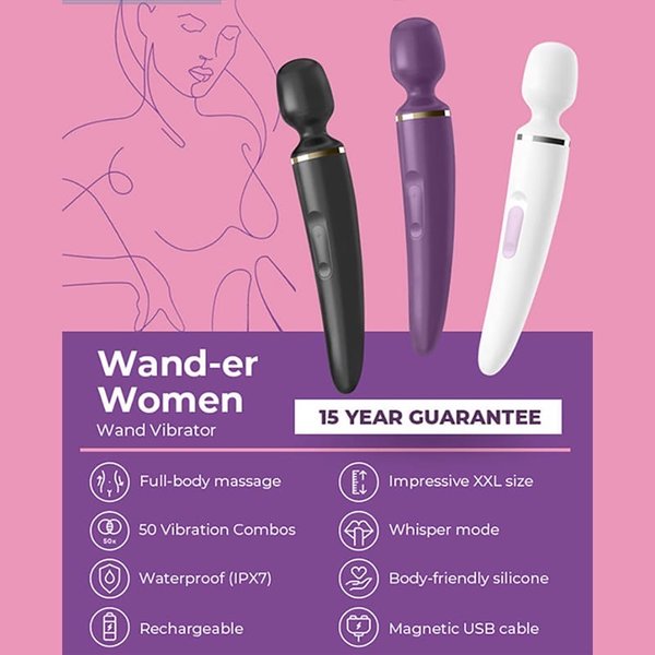 Вибромассажер «Satisfyer Wand-er Woman» – это дверь в мир чувственных наслаждений! Оснащённый мощным перезаряжаемым аккумулятором вибромассажёр способен снять напряжение и подарить Вам невероятный массаж всего тела, не забывая о самых потаённых уголках женского организма, и подарить Вам незабываемые оргазмы! Ствол и головка вибромассажёра выполнены из приятного на ощупь медицинского силикона. Внушительный размер вибромассажёра — XXL — никого не оставит равнодушным! «Satisfyer Wand-er Woman» может использоваться как для соло-игр, так и дополн… — Читать дальше