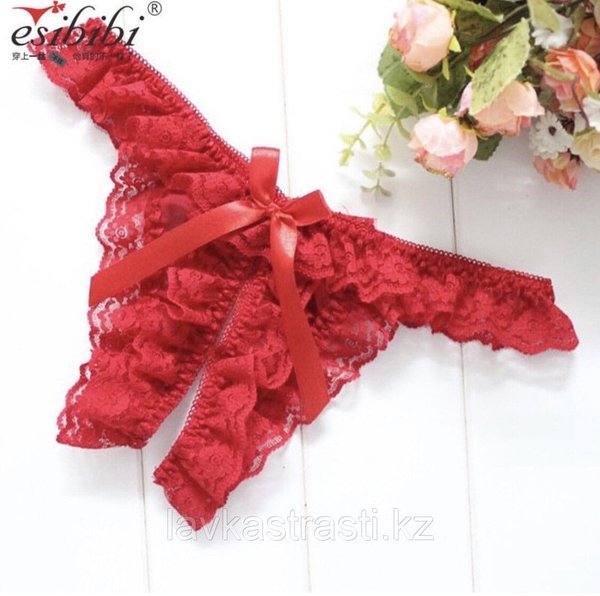 Ажурные стринги с доступом, красные, р-р 42 — 44 (S — М)