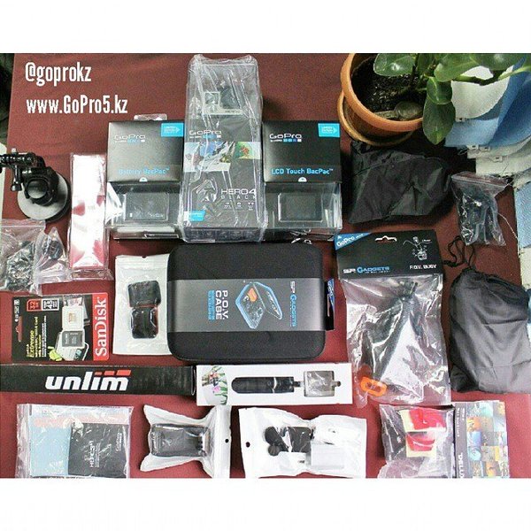 12)+ Карта 32гб Sandisk Extreme (обычная цена – 15000 тг). 13)+ Крепление на голову (обычная цена – 5000 тг). 14)Длинная телескопическая ручка монопод-штатив (обычная цена – 6500 тг). 15)+ Крепление на штатив Tripod Mount (обычная цена – 2500 тг). 16)+ Крепление на руль, лыжную палку Ride Handlebar (обычная цена – 5500 тг). 17)+ Кейс для камеры GoPro (средний) (обычная цена – 10500 тг). 18)+ Портативная зарядная батарея Power Bank (обычная цена – 6900 тг). 19)+ Крепление на грудь (неоригинальное) (обычная цена – 9500 тг). 20)+ 1 плоская и 1 изогнутая клеящихся платформы липучки (обычная цена – 2500 тг). 21)Дополнительный аккумулятор Bac Pac Battery (обычная цена — 17600 тг).