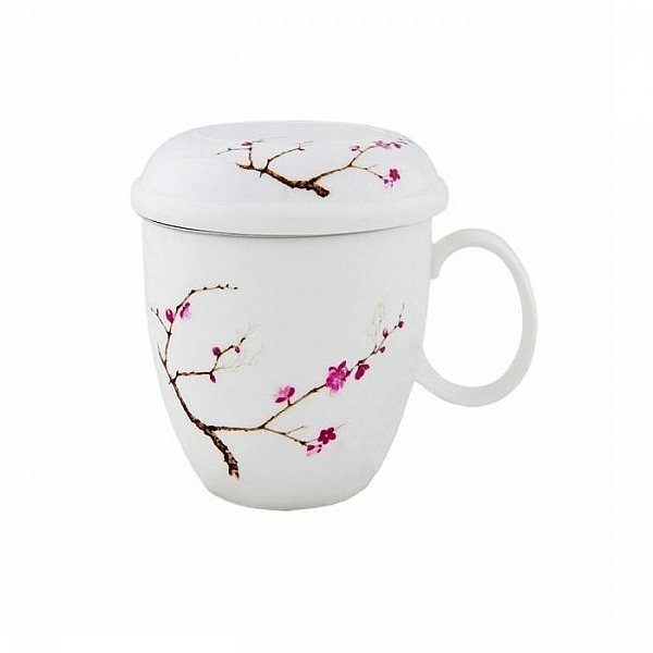 Кружка с ситом и крышкой. Объем 350 мл. Материал: костяной фарфор. Цена: 3500 тг.