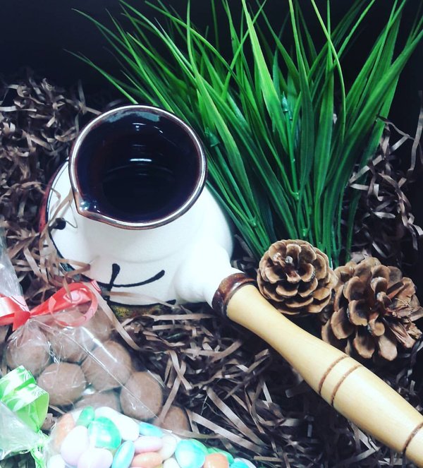 Кофейная Подарочная корзина от магазина Gutenberg. 3 вида кофе, джезва, немецкие сладости (драже с марципаном и персипаном), сахар карамельный и тростниковый. Фирменный дизайн. Цена: 17.500 тг.