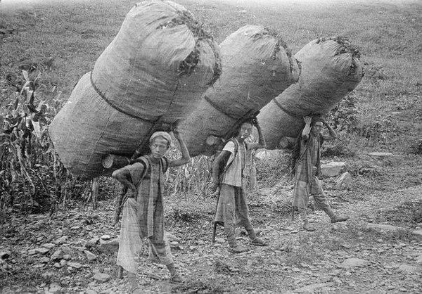 Крестьяне несут тюки с чаем, Китай, 1917—1919 гг.