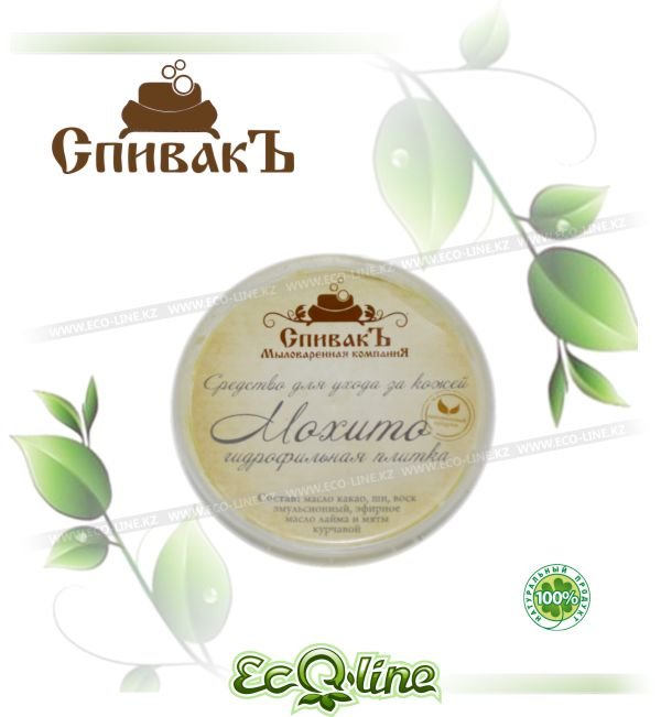 Гидрофильная плитка Мохито Спивакъ Обладает свежим ароматом известнейшего кубинского коктейля! В составе эфирное масло лайма, которое регулирует работу сальных желез, улучшает цвет кожи и разглаживает ее, и эфирное масло мяты курчавой, которое, помимо антисептического и тонизирующего эффекта, обладает антиоксидантными свойствами. Гидрофильное масло при взаимодействии с водой превращается в молочко, которое увлажняет и питает кожу.