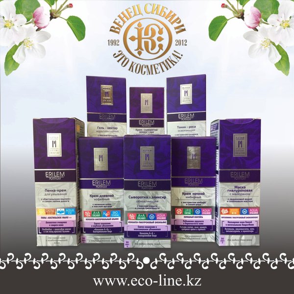 ВЕНЕЦ СИБИРИ СЕРИЯ «ERILEM PLATINUM» Для улучшения состояния кожи нормального и комбинированного типов, получения ровного цвета лица, разглаживания морщин, а также для создания внешнего и внутреннего комфорта клеткам кожи косметологами и биотехнологами в формате серии «ERILEM — PLATINUM» разработан уникальный косметический биоальянс “PLATINUM LIFTING CREATIVE”: Данный биоальянс обладает комплексным воздействием на кожу и имеет стойкий эффект омоложения благодаря следующим решениям: Биоальянс добавляется в легкую косметическую основу типа «масло… — Читать дальше