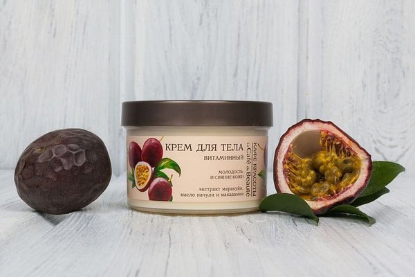 Витаминный крем для тела от Кафе Красоты Крем для тела с экзотическим ароматом маракуйи глубоко питает кожу, насыщает ее витаминами и необходимыми полезными веществами. Активные компоненты подарят Вашей коже нежность и бархатистость, а также вернут молодость и упругость. Экстракт Маракуйи обладает омолаживающим свойствами, улучшает способность кожи к сохранению влаги, повышает упругость и эластичность. Масло пачули оказывает питательное, увлажняющее и тонизирующее действие, стимулирует процесс обновления клеток.Масло Макадамии обладает мощны… — Читать дальше