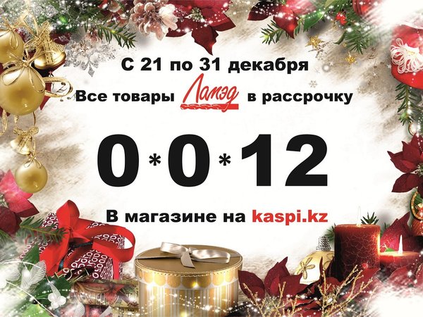 А мы напоминаем, что по 31 декабря 2018 года Вы можете купить любой товар ТОО Ламэд в рассрочку на 12 месяцев под 0%.