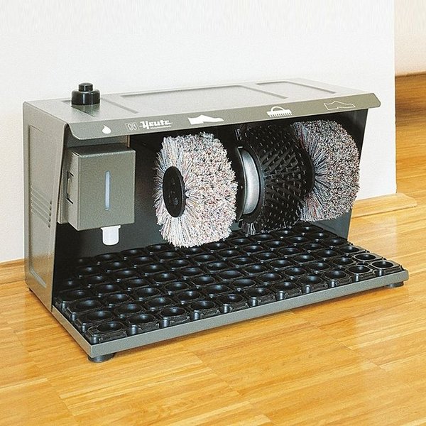 — Машина для чистки обуви Heute Cosmo 3 Graphite имеет корпус современной и очень красивой формы из аллюминиевого литья с толщиной стенок до 8 мм, что придает корпусу чрезвычайно высокую жесткость. Модель Cosmo 3 имеет сенсорный включатель, смонтированный на днище машины, что позволяет включить машинку всего лишь касанием ноги сенсора.