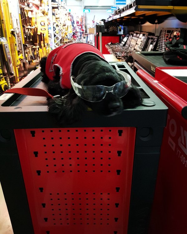 Даже братья наши меньшие выбирают качественный инструмент и оборудование Тележка для инструментов марки YATO YT-0914 оснащена 7-мью ящиками, которые выдвигаются на шариковых направляющих, большими резиновыми колесами с тормозными элементами и стопорами. Столешница тележки изготовлена из противоскользящего и маслостойкого материала. Выдерживает нагрузку до 300 кг. Такие сервисные тележки идеальны для автомастерских и СТО.