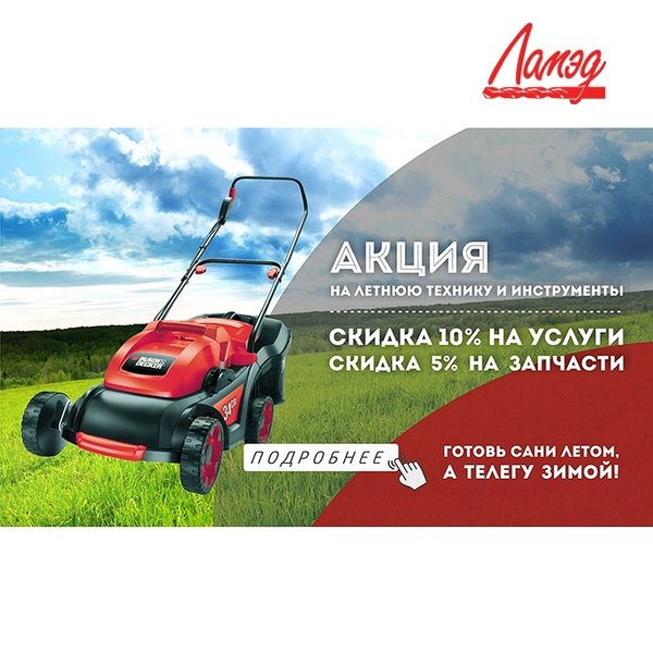 У нас для вас хорошая новость: до конца февраля 2019 года мы запустили акцию по ремонту и обслуживанию всей летней техники и инструментов.