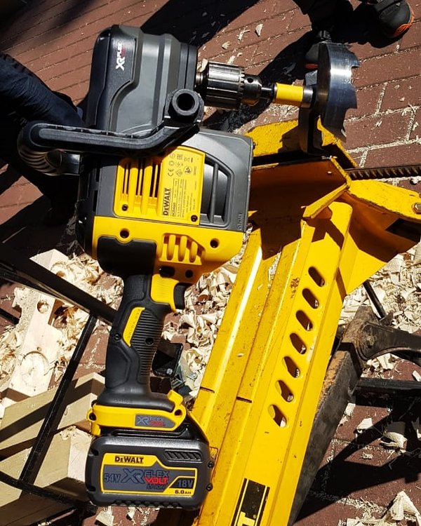 Аккумуляторная угловая дрель идеально подходит для выполнения сложных работ по сверлению шнековыми сверлами в брусе, коронками большого диаметра в древесине, металле и керамике, а также сложных буровых работ при прокладке сантехнических и электрических коммуникаций. Инструмент работает на базе передовой инновационной платформы FLEXVOLT™ с рабочим напряжением 54V, оснащен высокопроизводительным бесщеточным двигателем последнего поколения, который обеспечивает высокие показатели производительности, максим… — Читать дальше