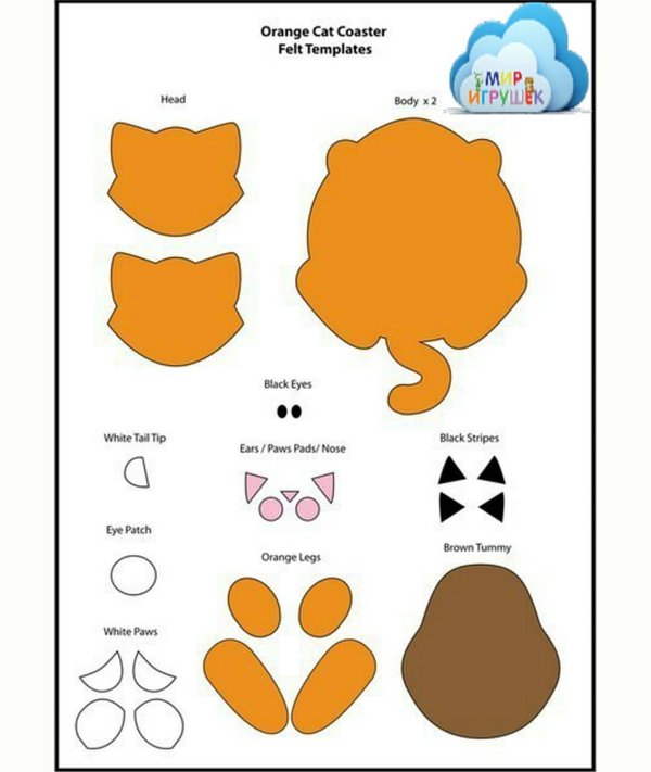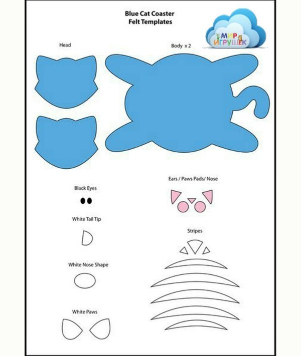 Ариэль Малышова (23.07.2016): #мастеркласскоикиизфетра А вот и первый котик, подставка под чашку, все достаточно просто. Берутся кусочки разноцветного фетра, вырезаются по имеющемуся шаблону и клеются друг на друга по схеме на предыдущем фото. Мир Игрушек Алматы