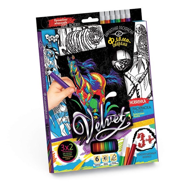 Ариэль Малышова (16.11.2016): У нас появились замечательные бархатные раскраски! Закажите с сайта mirigrushek.kz любую всего за 1400 тенге! Эти раскраски понравятся как детям, так и взрослым. Благодаря бархатным и объемным контурам раскрашивать стало куда проще, а рисунок выглядит аккуратным и красивым! В набор входит 3 раскраски с нанесенным контуром и фломастеры «VELVET».