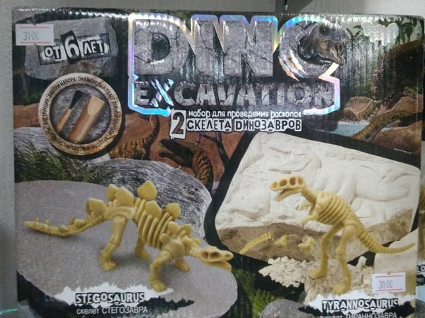 Ариэль Малышова (23.11.2017): Новинка! Набор «Раскопки скелета динозавра» В набор входит две окаменелости из которых ребенок сможет в игровом процессе обнаружить два скелета динозавров.