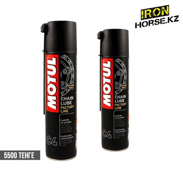 MOTUL C4 CHAIN LUBE FACTORY LINE 400 Ml Есть в наличии Смазка для цепей дорожных и спортивных мотоциклов.Липкая,окрашена в белый цвет.Аэрозоль.Все типы цепей: для стандартных и кольцеобразных втулок O-RING, X-RING, Z-RING.Применяется только в “ROAD” (липкий продукт) ___________________________________