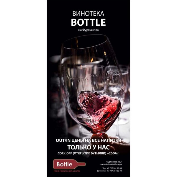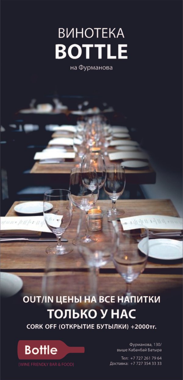 В BOTTLE на Фурманова, 130/выше Кабанбай Батыра Бронь столов: