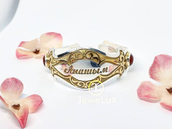 Аяулы аналарымыз бен әжелерімізге арналған күміс пен алтыннан жасалған керемет туындылар ⠀ Білезік «Асыл Анам» ⠀ ▪күміс, алтын жалатылған, ▪табиғи ақық тас ▪салмағы 30—40гр. ▪ішкі бөлігіне гравировка ⠀ Қазақстан бойынша жеткізу ТЕГІН ⠀ Алматы қаласы бойынша күнбе-күн жеткізіп береміз. Тапсырыс бойынша