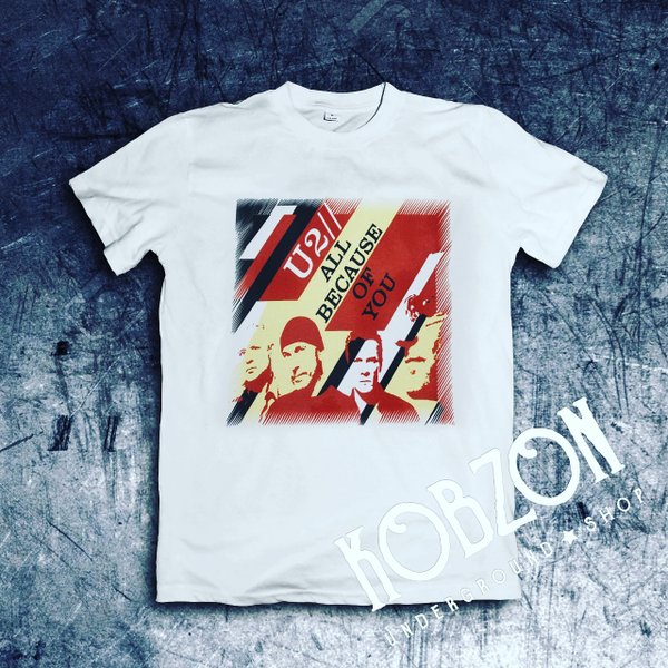 Рифф песни U2 «All Because of You» появился во время одной из легендарных сессий записи в Монако. По словам Эджа, гитариста группы, музыканты хотели внести свою лепту в создание великого рок-н-ролла двадцать первого столетия: «Пожалуй, это единственная по-настоящему рок-н-ролльная песня, которую мы когда-либо писали». Тишот с принтом обложки сингла U2 «All Because of You» в @kobzon_underground