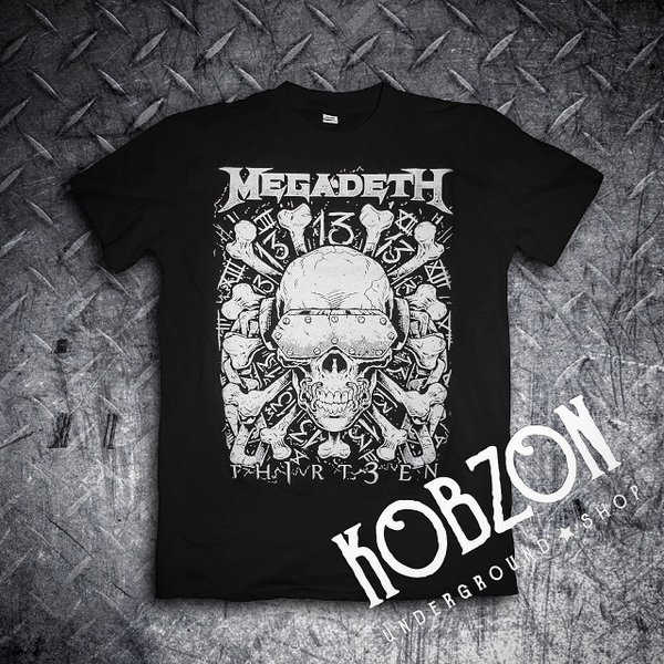 Тринадцатый студийный альбом Megadeth увидел свет в 2011 году, получив название, согласно номеру в дискографии — «13» (итоговый вариант названия «Th1rt3en». По словам Дэйва Мастейна, название было выбрано не случайно: «Я начал играть на гитаре, когда мне было 13, родился 13-го числа и это наш 13-ый альбом. После того, как было выбрано название, число 13 стало преследовать меня повсюду. Даже в отелях, где никогда не было тринадцатых этажей, они снова есть.» — признавался музыкант. Мерч Megadeth в @kobzon_underground