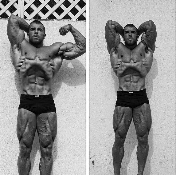 мышца плеча ни в коей мере не может служить критерием силы человека. Как известно, мышцы сгибатели в среднем в 2 раза слабее мышц разгибателей. Да и объем руки бицепса формируется преимущественно трицепсом, на который приходится до 70% толщины предплечья в обхвате. Как же накачать бицепс? Чтобы нарастить бицепс потребуется вначале расстаться с несколькими стереотипами. Из всех известных широкой публике упражнений на бицепс – подъемов штанги, гантелей стоя/сидя/на скамье Скотта с супинацией или молотом (только с гантелями) по-настоящему эффективными являются только подъемы штанги стоя. К тому же правильная техника их выполнения значительно отличается от общепринятой. Никаких вам закидывании, никаких наклонов туловищем вперед (это позволяет незначительно увеличить амплитуду движения), никаких ограничений в количестве подъемов и повторов. Это упражнение выполняется до мышечного отказа, опытные спортсмены говорят, что после него должно буквально тошнить. Для менее фанатичных спортсменов критерием достаточной загрузки является невозможность полноценного сгибания руки в локте, возникающие при этом болевые ощущения, судорога. Как накачать бицепс? При выполнении подъемов штанги на бицепс наибольшее внимание нужно уделять негативной фазе упражнения – контролируемому спуску. Контролируемый спуск означает, что штанга не падает под действие силы тяжести с ускорением свободного падения, а сам спортсмен, и только он, задает скорость движения. Учитывая тот факт, что бицепс в негативной фазе может развить наибольшее усилие (известно, что в позитивной фазе, при подъеме снаряда, бицепс развивает только половину своего максимального усилия), Майк Ментцель в своей время предложил полностью исключить из тренировки подъемы снарядов, заменив их контролируемыми спусками. Партнёр помогает спортсмену закинуть наверх вдвое против обычного тяжелую штангу, и тот начинает медленно ее опускать. Трудно судить об эффективности такой системы, но все мы помним, как в школьные годы учились подтягиваться – сначала запрыгнув на перекладину, а потом медленно опускаясь. Впрочем, подъемы штанги на бицепс не столь эффективны, как хотелось бы. Движение выполняется вокруг одной точки опоры – локтя, что провоцирует нижние отделы двуглавой мышцы гораздо больше, чем верхние. Это приводит к снижению скорости роста мышечной массы и непропорциональному ее развитию. Как этого избежать? Очень просто – наибольший эффект в наращивании объема бицепса дают два упражнения: подтягивания обратным хватом и тяга штанги в наклоне обратным хватом. Обратный хват – это когда пальцы наружу, на себя. Оба упражнения должны выполняться с максимальной амплитудой. Во избежание мышечной адаптации рекомендуется выполнять их не каждый день, а поочередно. В случае если подтянуться не удается – а такое сегодня сплошь и рядом – выполнять только тягу. Разумеется, при столь низкой физической подготовке, говорить о какой бы то ни было адаптации и способах ее предотвращения, не приходится. Тяга или подтягивания становятся базовыми упражнениями, первым вспомогательным нужно сделать подъемы штанги на бицепс. Начиная со 2—3 месяца тренировки можно добавлять в тренировочную программу еще одно упражнение: подъемы штанги на бицепс на скамье Скотта или подъемы гантелей. Разнообразие у