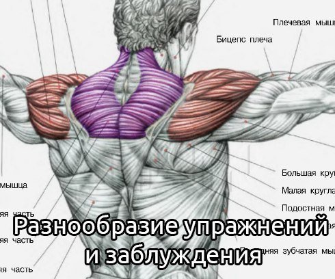 пучков. Изолировать один пучок относительно другого в данном случае невозможно. 3. «Привыкания» и потери тренировочного воздействия при выполнении одного и того же упражнения не происходит. Упражнение – лишь инструмент для создания определенного режима нагрузки на целевые мышцы. Снижение результативности тренинга может быть обусловлено выполнением упражнения длительное время в одном и том же режиме. Наверняка вы все еще продолжаете слышать из разных источников о необходимости делать разнообразные упражнения на каждую группу мышц, чтобы «развить все ее головки», или «развить внешние и внутренние участки», или в целях «избежать привыкания». И наверняка делаете по нескольку упражнений на каждую мышечную группу. Однако в ряде случаев необходимое количество упражнений можно смело сократить, не бегая от одного снаряда к другому, но есть и такие группы мышцы, которые для полноценного развития обязательно предполагают набор разных движений. Отделим мух от котлет на примере основных мышечных групп. Бицепс Основная функция двуглавой мышцы плеча – сгибание предплечья в локтевом суставе. Отсюда и типичный набор упражнений: подъемы штанги и гантелей на бицепс, подъем сидя в наклоне и на «Скамье Скотта», сгибание рук на верхнем и нижнем блоке. Со стороны локтевого сустава обе головки бицепса соединяются, образуя брюшко, которое заканчивается одним сухожилием, прикрепляющимся к бугристости лучевой кости. Для того, чтобы произошло сгибание предплечья в локтевом суставе, двуглавая мышца плеча должна сократиться и при помощи сухожилия, соединяющего обе головки, как бы подтянуть предплечье к бицепсу. Что бы мы ни делали при сгибании предплечий, какой бы ширины хват ни использовали, обе головки бицепса будут сокращаться одинаково, поскольку скреплены в одно целое сухожилием. Отсюда становится понятным, что варьирование хватов при тренировке двуглавых мышц является необязательным делом, достаточно лишь подобрать наиболее комфортный для себя хват, и можно использовать его постоянно. Выполнение упражнений из растянутой или сокращенной позиции, например, как при подъеме гантелей сидя на наклонной скамье и подъем на «Скамье Скотта», не задействует в большей или меньшей степени верхнюю, нижнюю или среднюю часть бицепса. Так как это невозможно с точки зрения физиологии, хотя субъективные ощущения при выполнении упражнений будут отличаться. Выполнение упражнений на «пик» бицепса является очевидным заблуждением, поскольку форма мышцы, в том числе в сокращенном состоянии, задана генетически. Итог: для гипертрофии двуглавой мышцы плеча острой необходимости выполнять множество упражнений не имеется, вполне возможно обойтись одним наиболее эффективным для вас лично упражнением. Трицепс Ситуация с трицепсом схожа с бицепсом в том плане, что в локтевом суставе все три головки трицепса также соединены одним сухожилием, которое прикрепляется к локтевому отростку локтевой кости. Основная функция трицепса – разгибание предплечья, и любое подобное движение осуществляется всей мышцей целиком, всеми тремя головками. Самые распространенные упражнения на трицепс: жим лежа узким хватом, отжимания на брусьях, французский жим, разгибание руки из-за головы, отведение руки в наклоне, разгибание рук на блоке к низу. Все эти упражнения в равной 