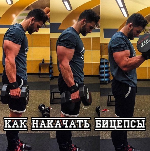 е к талии. — Не давайте плечам вовлекаться в работу. Ведь мы тренируем бицепс, верно? 4. Стойка Не уводите плечи вперед, а старайтесь наоборот чуть свести лопатки вместе. Держите брюшные мышцы в напряжении. 5. Исключи инерцию Поднимайте и опускайте штангу плавно, без лишних движений. Это поможет вам максимально нагрузить бицепс, тем самым создавая для него более стрессовую ситуацию и, соответственно, давая больше стимула для роста. 6. Чередование Меняйте кол-во повторов в сете каждую неделю, что бы вовлечь в работу разные мышечные волокна. Делайте 5—7 повторов первую неделю, а вторую неделю тренируйте мышцы бицепса в диапазоне 10—20. Ниже приведен вариант тренировки бицепса: — Подъем штанги на бицепс 3*5—15. Отдых 60 секунд. — Подъем гантелей хватом «молоток». 3*10—20. Отдых 60 секунд. — Подъем гантелей на бицепс на наклонной скамье. 3*7—14. Отдых 60 секунд.