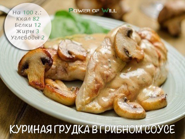 КУРИНАЯ ГРУДКА В ГРИБНОМ СОУСЕ Ингредиенты: Куриная грудка — 1 шт. Шампиньоны — 250 г Натуральный йогурт — 1 стакан Лук — 1 шт. Оливковое масло — 1 ст.л. Соль, перец — по вкусу Приготовление: 1. Грибы и лук нарезать пластинками, обжарить в небольшом количестве масла на сковороде. 2. На куске филе сделать неглубокие надрезы, чтобы быстрее пропекалось. в форму для запекания выложить половину грибов, сверху положить грудку, сверху оставшиеся грибы. 3. Сверху вылить пару столовых ложек воды из-под грибов, йогурт и поставить запекаться при (примерно… — Читать дальше