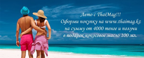Внимание супер Акция!!! Встречайте лето вместе с ТайМаг! Совершите покупку в нашем интернет магазине на сумму от 4000 тенге и получите 100 мл косметического ароматизированного масла в подарок!!! Количество товара ограниченно, торопитесь!!! Ваш ТайМаг