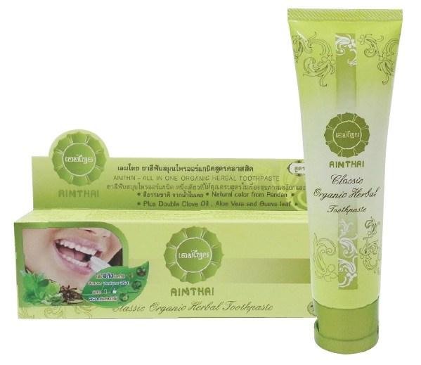 есен, увлажняют и предотвращают воспаление десен. Зубная паста AIMTHAI обогащена природными соединениями, гвоздичным маслом и солями, укрепляющими зубную эмаль. Экстракт лакрицы, борнеол и камфора умешают неприятный запах изо рта. Масло мяты освежает дыхание. Абразивный компонент состоит из частиц, имеющих круглую форму, тем самым не повреждая эмаль прекрасно очищает зубы от налета и пятен от курения, употребления кофе, чая и красного вина. Состав: Sorbitol Solution, Pandanus Amaryllifolius (pandan) Leaf Extract, Calcium Carbonate, Glycerin, Hydrated Silica, Propilen Glycol, Sodium Lauroyl Sarcosinate, Cinnamomum Camphora (Camphor) Extract, Borneol, Cellulose Gum, Xanthan Gum, Menthol, Glycyrrhiza Grabra (licorice) Root Extract, Pimpinella Anise (Anice) Fruit Oil, Organic Guava (Psidium Guajava) Extract, Eugenia Caryophyllus (Clove) Bud Oil, Mentha Piperita (Peppermint) Oil, Malaleuca Alternifolia (Tea Tree) Oil, Organic Olea Europaea (Olive) Fruit Oil, Organic Oenothera Biennis (Evening Primorose) Oil, Orgnic Simmondsia Chinensis (Jojoba) Seed Oil, Organic Aloe Barbadensis Leaf Juice, Organic Camellia Sinensis (Green Tea) Leaf Extract, Psidium Guajava Fruit Extract, Peucedanum Ostruthium Leaf Extract, Sodium Fluoride, Potassium Nitrate, Flavour, Sodium Chloride, Sodium Benzoate. Способ применения: Используйте пасту дважды в день или после каждого приема пищи. Внимание: Детям до 6 лет чистить зубы только при присмотре взрослых, используя зубную пасту размером с горошину (1/3 от зубной щетки). Не глотать! Цена 1800 тенге Ваш ТайМаг