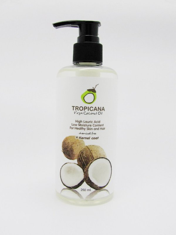 химических добавок и это 100% экстракт, пригодный для употребления в еду и питье. Масло обладает прекрасными питательными, смягчающими и увлажняющими свойствами, и надолго поддерживает оптимальный баланс влажности в коже. 100% кокосовое масло холодного отжима для еды, волос и тела. Кокосовое масло питает, увлажняет, разглаживает, защищает кожу. Масло кокоса гипоаллергенно, подходит для любых типов кожи. Благодаря своим бактерицидным свойствам повышает сопротивляемость организма к вирусным инфекциям, позволяет подтянуть кожу после беременности и быстрого снижения веса, легко впитывается, не закупоривая поры, делая Вашу кожу бархатистой и гладкой. 100% кокосовое масло оптимально подходит для употребления в пищу для поддержания здоровья. Масло изготовлено путем холодного отжима, который способствует тому, что содержание лауриновой кислоты в масле, остается высоким. Многие думают раз это масло, то волосы и кожа после нанесения масла будет обязательно жирной и липкой, но это не так. Кокосовое масло отлично поглощается кожей, не жирнит ее, хорошо смывается с волос и дарит вам потрясающий легкий кокосовый аромат, который многие называют баунти) Кстати, именно этот запах многие ждут от масла, но кокосовое масло хорошего качества не должно иметь яркий аромат. Жирнокислотный состав: Лауриновая кислота — 39–54%. Миристиновая кислота — 15–23%. Олеиновая кислота — 4–11%. Каприловая кислота — 5–10%. Каприновая кислота - 4.5–9.7%. Пальмитиновая кислота - 7.5–10.5%. Капровая кислота - 0.2–0.5%. Стеариновая кислота - 1.0–3.2%. 100% натуральное кокосовое масло холодного отжима «TROPICANA OIL» оптимально подходит для употребления в пищу и поддержания здоровья. Является диетическим продуктом. Легко усваивается, доставляет в организм много питательных веществ. Богато витаминами С, А, Е и природными антиоксидантами. НЕ канцерогенно, НЕ содержит холестерина. Срок годности: 2 года. После вскрытия условия хранения не меняются. Внимание! В жидком состоянии (при температуре 24С и выше) кокосовое масло прозрачно, имеет светло-желтоватый оттенок и обладает легким, нежным, сладковатым запахом. При температуре 22—24 градуса и ниже, масло теряет прозрачность, становится твёрдым и приобретает белый цвет со слегка желтоватым оттенком. При этом оно НЕ теряет ни вкусовых, ни полезных свойств. Чтобы растопить масло в случае затвердевания, достаточно подогреть бутылку под струей горячей воды, поставить ее на батарею или подержать 2—4 минуты в водяной бане. Изготовлено без добавления химических добавок из отборных кокосов, не содержит консервантов и ароматизаторов. Цена 2500 тенге Ваш ТайМаг