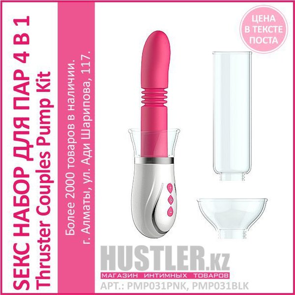 Вы такого еще не видели! Супер-игрушка 4 в 1! Вибратор с функцией поступательного движения Вибратор с помпой для клитора Только помпа для клитора Помпа для сосков Мужская помпа Насчитали аж 5 функций? Мы же говорим – это супер-игрушка! Компактность – ее второе имя! Все насадки крепятся всего к одной основе, которая работает от мощного перезаряжаемого аккумулятора. Это чудо поступило к нам в двух цветах – розовом и черном! Смотри карусель – влюбляйся и заказывай! Цена: 45 400 тг. (актуальна на момент публикации) Закажи сейчас: