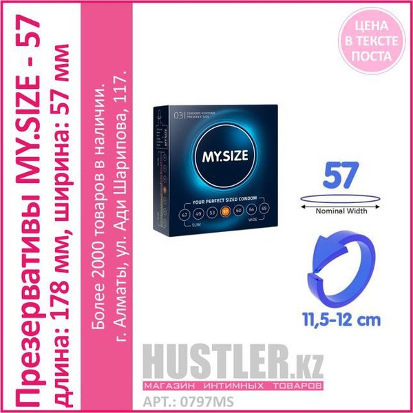 MY.SIZE — уникальная линейка презервативов с широким выбором размеров по длине и ширине. С ними — каждый мужчина может индивидуально подобрать размер и получить максимум комфорта и приятных ощущений в сексе. Латекс, из которого произведены MY.SIZE мягкий и эластичный. А смазка на силиконовой основе – обеспечивает хорошее скольжение. А еще, что немаловажно, у презервативов нет неприятного запаха и все компоненты являются гипоаллергенными. Размеры: длина — 178 мм, ширина – 57 мм, толщина стенки – 0.07мм. г.Алматы, ул. Шарипова, 117 г.Алматы,… — Читать дальше