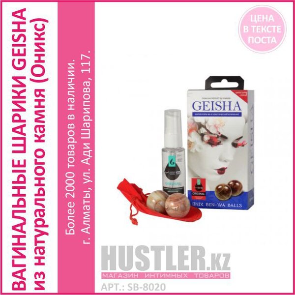 для эффективной женской тренировки. Уже через несколько недель интенсивных упражнений Ваш мужчина заметит разницу в ощущениях при занятии сексом. А при регулярном использовании положительно влияют на женское здоровье. В комплекте стильный бархатный мешочек для хранения и лубрикант на водной основе. Цена: 7 800 тг. (актуальна на момент публикации) г.Алматы, ул. Шарипова, 117 г.Алматы, ул. Розыбакиева, 247, ЖК Вавилон, блок 8, 3 этаж⠀ +WhatsApp⠀⠀ Доставка по Алматы в день заказа Почтой по РК